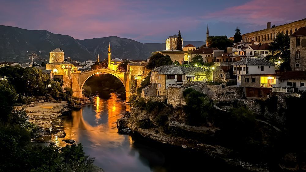 Starii Grad in Mostar, Bosnia at Dusk